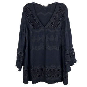 La Blanca Black Tunic Mini Dress Swim Cover Up Lace Embroidery US 10 UK 14 EU 42