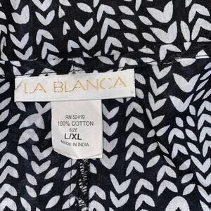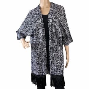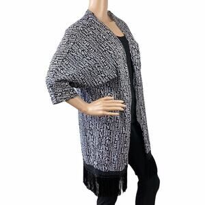 La Blanca Black White Fringed Kimono Open Front Cotton Cover Up Cardigan L/XL
