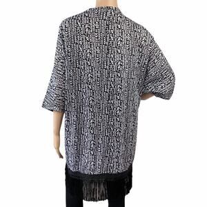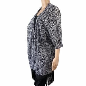 La Blanca Black White Fringed Kimono Open Front Cotton Cover Up Cardigan L/XL