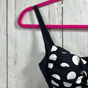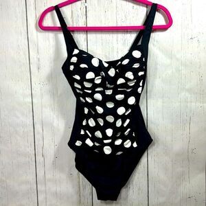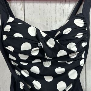 La Blanca Black White Polka Dot One Piece Swimsuit Ruched Retro Style Beach