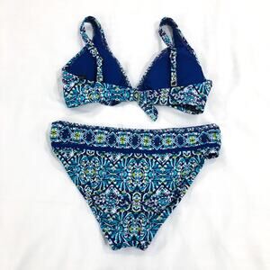 La Blanca Blue Tuvalu Tapa Front Tie 2 Piece Bikini Swim Set