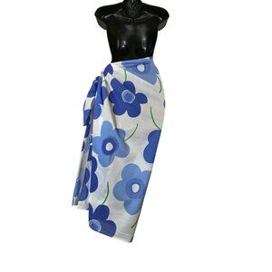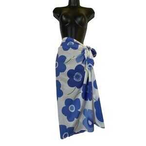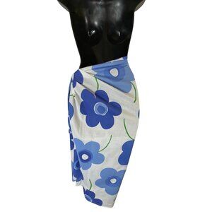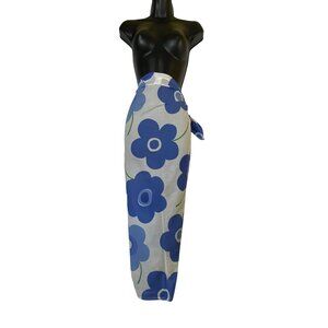 La Blanca By Rod Beattie 100% Cotton Floral Sarong Wrap Skirt Blue White Beach