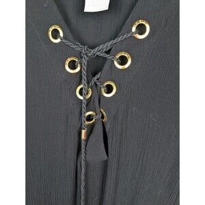 The La Blanca Capri Lace Front Beach Caftan Dress is a stylish and elegant cover up designed for women. Made from lightweight and breathable polyester material, this black dress features a solid pattern with intricate lace accents, giving it a modern and bohemian touch. With its above-the-knee length and comfortable fit, this dress is perfect for beach days or poolside relaxation, offering both style and comfort.
