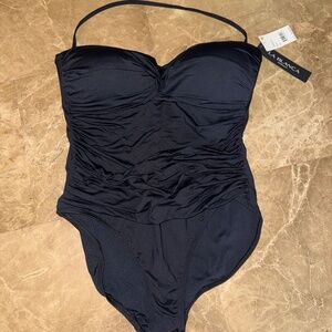 La Blanca Convertible Black Ruched One Piece Bathing Suit