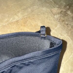 Brand new, never tried on. Liner still intact. Can be strapless or have a halter strap. Ruched fabric in the stomach area,