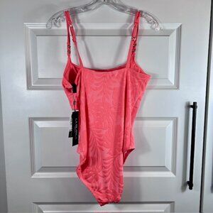 one piece, resort wear, tropical, jacquard, coral, adjustable straps, summer vacation, beachwear