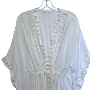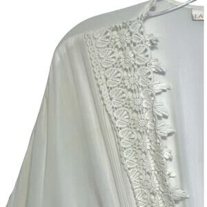 La Blanca Costa Brava Kimono Swim Cover Up Womens Large White Crochet Lace Trim