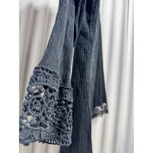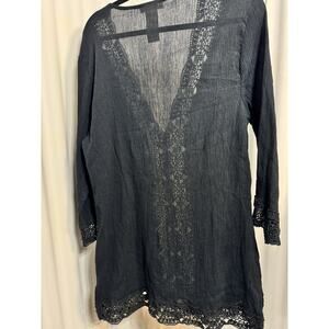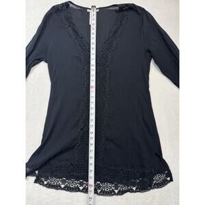 La Blanca Cover Up Island Fare Tunic V Neck Crochet Black Womens LG