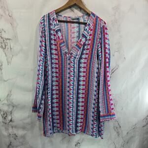 La Blanca Cover Up Womens Large Pink Blue Beach Topper Dress Long Sleeve