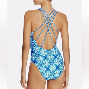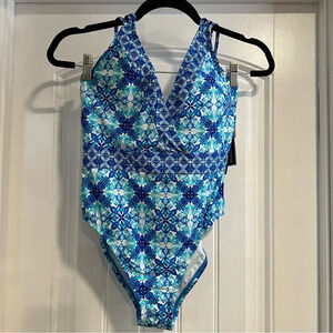 La Blanca Crystal Blue Printed Strappy One Piece Swimsuit. Size 8. NWT.