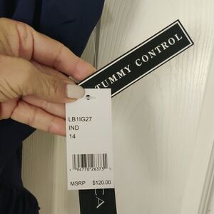 Elegant deep blue swimsuit by La Blanca. Features a sleek design. size 14 NWT, cute open back, adjustable at the neck, padded and sleek ruching sides, has tummy control.