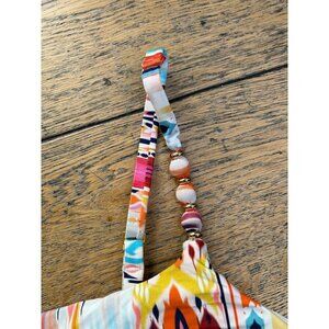 Turn up the heat in this one-piece swimsuit rendered in warm, desert-inspired hues with a dash of turquoise blue. The simple silhouette skims your body perfectly with gentle shirring that handles worry areas with ease. We especially love the adjustable shoulder straps. Not only do they provide the perfect amount of lift, but they also feature beaded details for that little something extra.