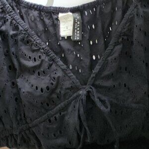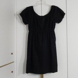 La Blanca Eyelet Coverup Dress Size M Black V-neck Swimwear 100% Cotton