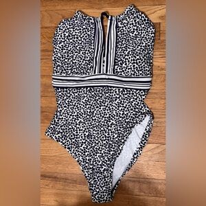 Channel your inner jetsetter with this resort-ready one-piece suit that draws upon the vibrant colors of Saint-Tropez while adding a tropical twist. The high keyhole neckline with removable cups lets you show off as much (or as little) skin as you like.