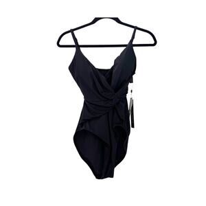La Blanca Island Goddess Asymmetrical Twist Front Swimsuit Black Size 6 NWT