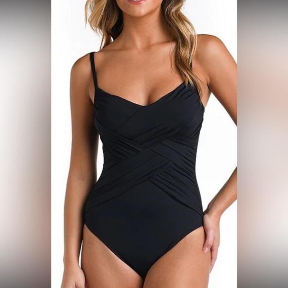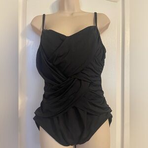 Pre loved in Excellent Condition La Blanca Island Goddess Front Draped Tummy Control One Piece Swimsuit 16