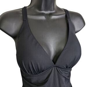 La Blanca Island Goddess Halter Skirted Lace Back One Piece Swimsuit Womens 10 Black