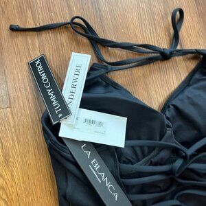 La Blanca Island Goddess Lingerie One-Piece Swimsuit Black 8 NWT MSRP $103