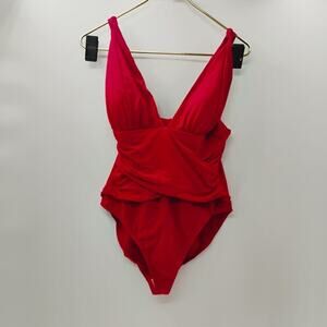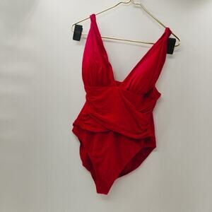 La Blanca Island Goddess Multi-Strap Cross Back One Piece Red Swimsuit Sz 12