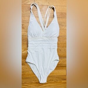 NWT La Blanca Island Goddess Multi-Strap Cross-Back One Piece - White