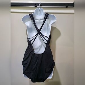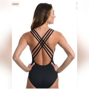 La Blanca Island Goddess Multi-Strap Cross-Back One Piece NWT size 14 Black