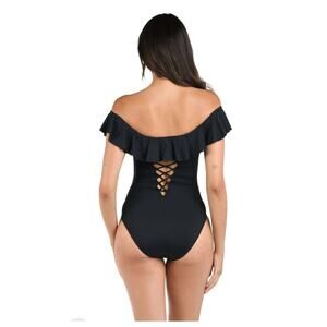 La Blanca Island Goddess Off Shoulder Ruffle One Piece Swimsuit, Women's Size 12