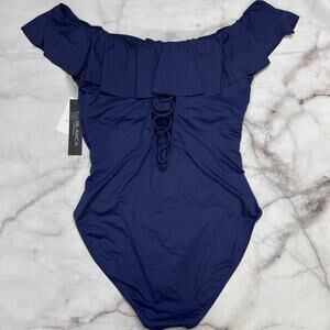 La Blanca Island Goddess Off Shoulder Tummy Control One Piece Navy Blue Size 16