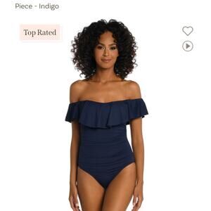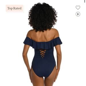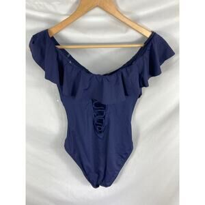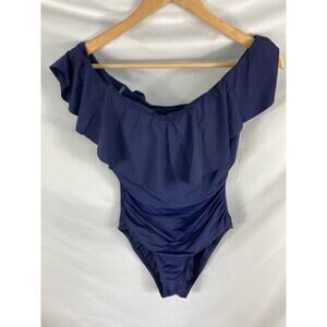 La Blanca Island Goddess One Shoulder Ruffle One Piece Blue Size 6