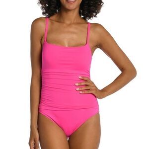 La Blanca Island Goddess Rouched Body 1 Piece Swimsuit swimwear size 14 pop pink