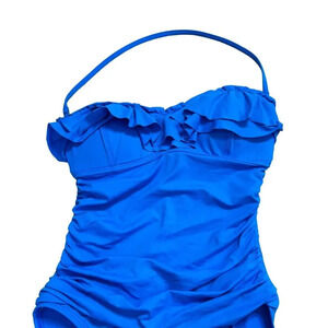 La Blanca Island Goddess Ruched Front Bandeau One Swimsuit Royal Blue Sz 8