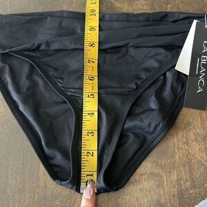 New with tags, hipster bikini bottoms instantly smooth and slim with an eye-catching ruched band that conceals worry areas. The hipster cut flatters your figure in front with discreet coverage in back that won't take away from your curves.