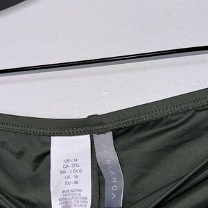 La Blanca Island Goddess Side Shirred Hipster Bottom in Olive Green Size 14
