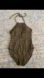 It features a padded bra for extra comfort and support, a halter strap, keyhole accents, an opened back, and a strappy look to it for a sexy look :) Great for a vacation, the beach, lounging around the pool etc.