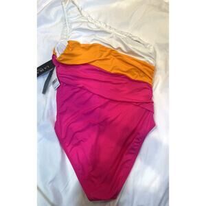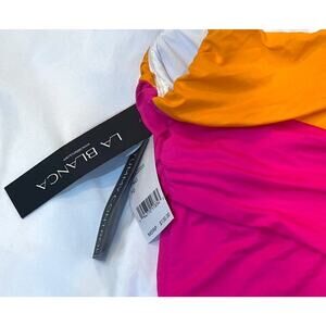 La Blanca Island Goddess Swimsuit Women 10 Pink Colorblock One Shoulder Shirred