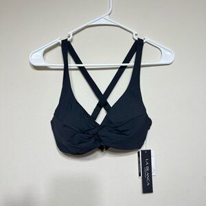 La Blanca Island Goddess Underwire Twist Front Black Swimsuit Top 10 NEW
