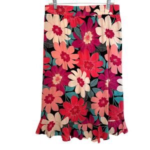La Blanca Midi Cover Up Skirt Womens Large Pink Full Bloom Floral Ruffled Hem