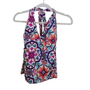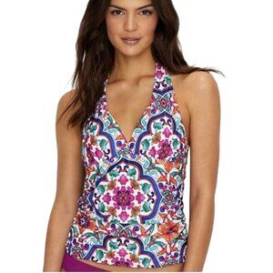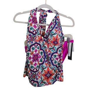 La Blanca NWT Plaza De Espana Tankini Floral Top Solid Bottom Size 10