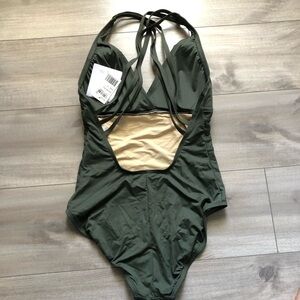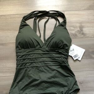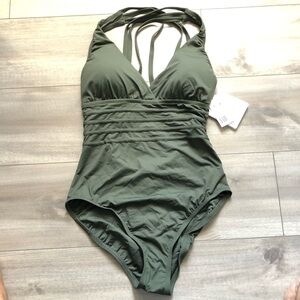 La Blanca Olive Green Goddess Criss Cross One Piece Swimsuit 10