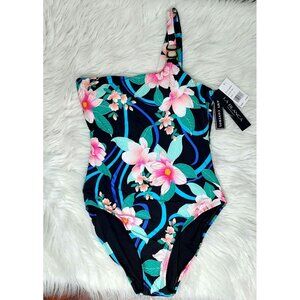 La Blanca One Piece Swimsuit 12 One Shoulder Floral Tropical NEW