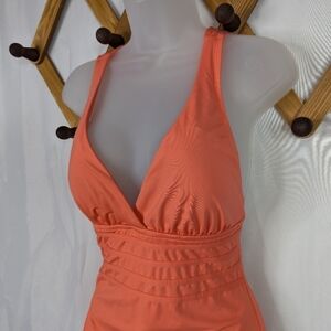 La Blanca Peach V-Neck Criss Cross Back One Piece Swim Suit - excellent condition