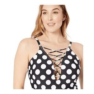 La Blanca Polka Dot Lace-Up Tummy Control One-Piece Swimsuit Size 18W New Without tags & no padding. Retails $118