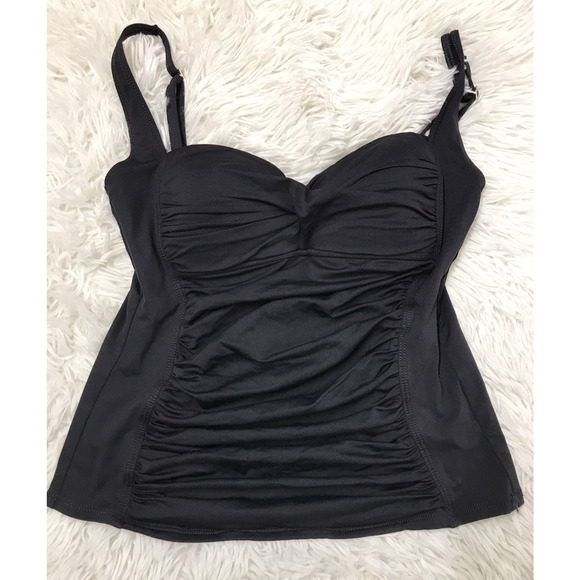 La Blanca Rod Beattie Swim Top Swimsuit Tankini Sz 8 Black Twist Front Bikini
