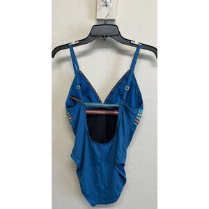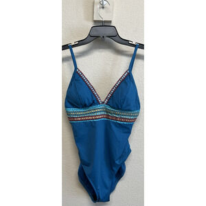 La Blanca Running Stitch Mio One Piece Swimsuit Caribbean Teal Blue Size 8 Lined