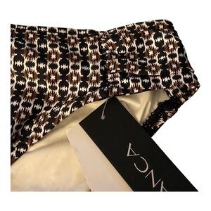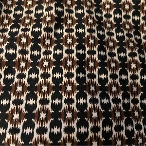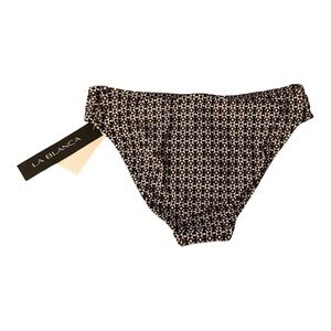 Hipster bikini bottoms in a brown and black tribal print fabric. Shirring at the hips flatters the figure, while moderate coverage in back allows you to move comfortably no matter what's on your itinerary.