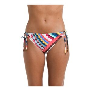 These hipster bottoms feature a mis-rise cut, adjustable loop side ties, and moderate rear coverage.