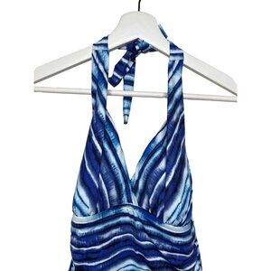 La Blanca Slimming Halter Tankini Top Women’s Size 4 Blue Wave Print NWT