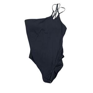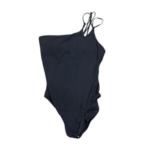 New no tags hygienic liner still attached. UNIVERSALLY FLATTERING — The one-shoulder silhouette brings balance to your shoulders, lengthening your arms in the process. SHAPE-SLIMMING DESIGN — Built-in tummy control offers up a shape-enhancing silhouette that instantly masks worry areas.