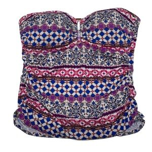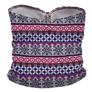 {La Blanca} Strapless Bandeau Swim Tankini Top Batik Geometric Paisley Floral