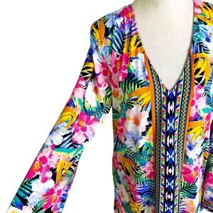La Blanca Stretch Knit Floral Swim Cover Up Tunic Size L