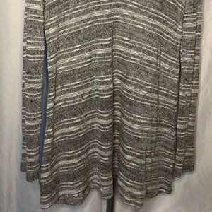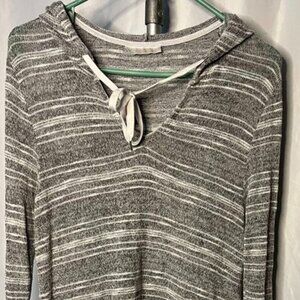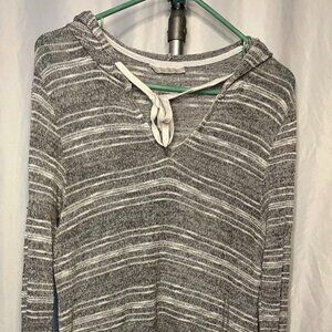 La Blanca hoodie tunic striped gray white knit top long sleeve lightweight resort wear beach coverup casual comfy cozy loungewear travel cruise everyday layering